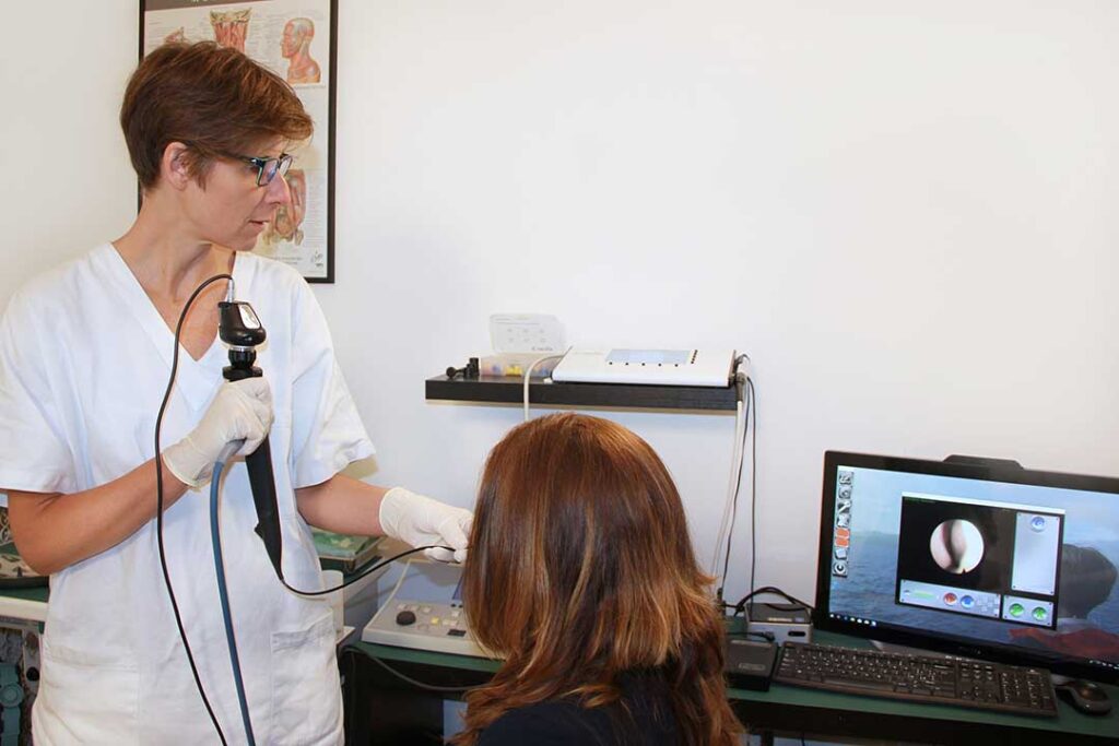 L’esame endoscopico rino-faringo-laringeo è un’indagine condotta con ausilio di una fibra ottica ed offre una valutazione complementare alla visita otorinolaringoiatrica; viene prescritto dal medico specialista quando si renda necessaria l’ispezione delle fosse nasali, del cavo rinofaringeo, della faringe e della laringe ponendosi l’obiettivo di valutare le caratteristiche e le funzionalità delle strutture anatomiche di tale distretto e di individuarne eventuali stati patologici.